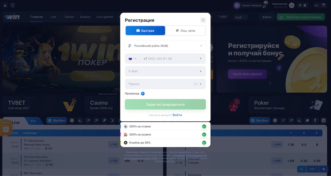 Чтобы иметь полный доступ к официальному сайту 1вин, нужно пройти процесс создания аккаунта, как правило, регистрация не занимает много времени и доступна как с основного сайта, так и через официальное зеркало.