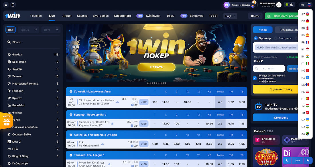 Само зеркало выглядит также, как и официальный сайт 1вин, но на другом домене. Рабочее зеркало полностью повторяет функционал платформы, включая доступ к покеру и любимым слотам.